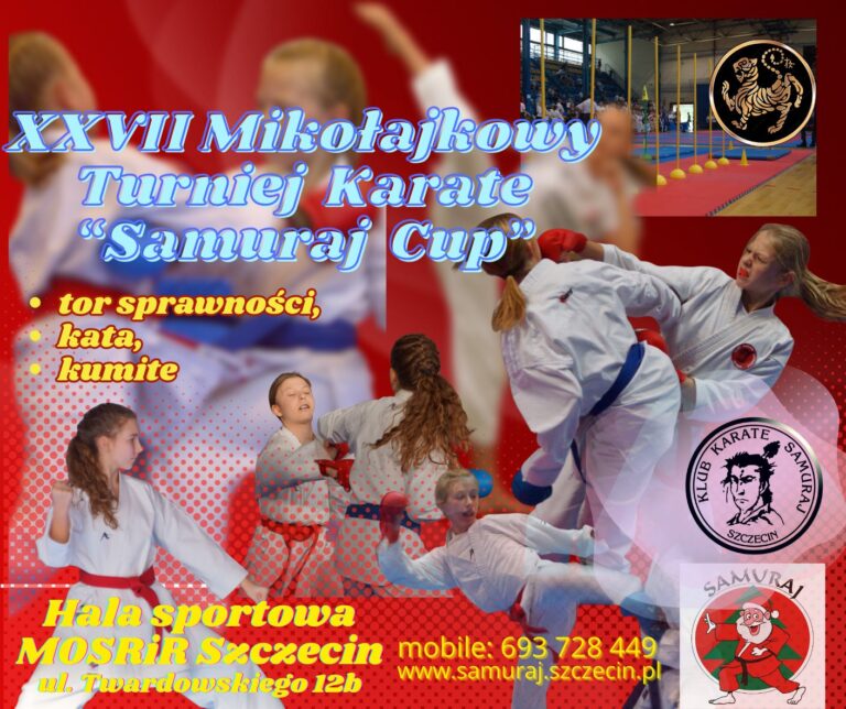 W sobotę 06.12.2025r. w hali sportowej MOSRiR przy ul. Twardowskiego 12b w Szczecinie odbył się XXVII Mikołajkowy Turniej Karate „Samuraj Cup”, którego organizatorem był Klub Karate Samuraj Szczecin. Do rywalizacji w konkurencjach, kata, kumite i tor sprawności zgłoszonych zostało 198 zawodników reprezentujących kluby i szkoły